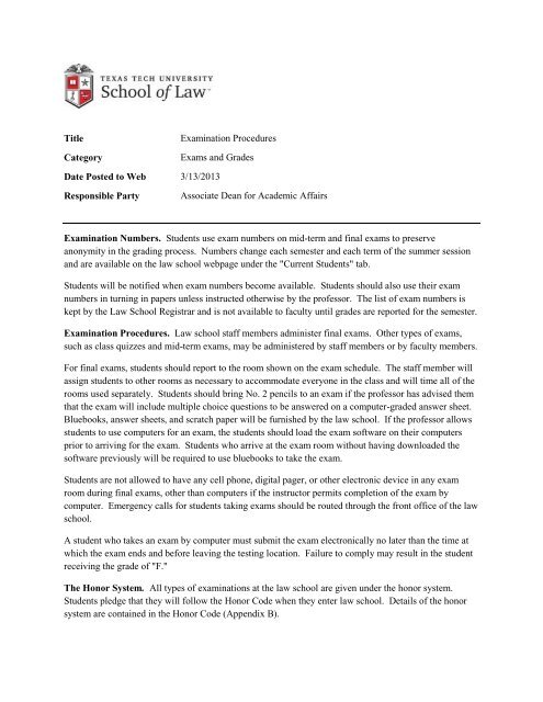 The Office of the Registrar is located in West Hall Room 103. LAW 6340 - Academic Legal Writing. Address Texas Tech University School of Law 3311 18th Street Lubbock Texas 79409-0004.